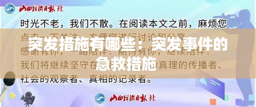 突发措施,顾名思义,是指在面临突发事件或紧急情况时,政府、组织或个人采取的迅速、果断的行动。这些措施旨在应对突发事件带来的影响,减轻损害,恢复正常秩序。突发事件的种类繁多,包括自然灾害、公共卫生事件、安全事故、社会安全事件等。在面对这些事件时,采取有效的突发措施至关重要。