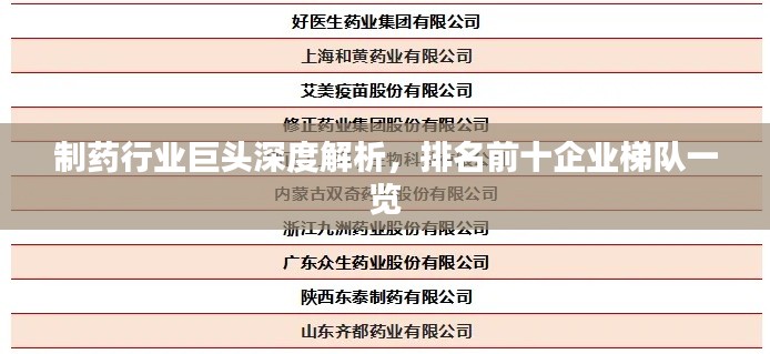 随着医药行业的飞速发展,制药公司的竞争也日益激烈,在此环境下,一些公司凭借其强大的研发实力、市场占有率和品牌影响力脱颖而出,成为了行业内的佼佼者,本文将为您介绍制药公司排名梯队前十名,带您了解这些行业巨头。
