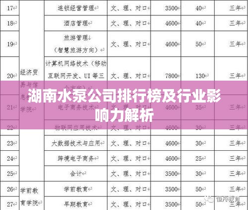 水泵行业是工业领域的重要组成部分,尤其在水利工程建设、电力、化工等领域扮演着重要角色,湖南省作为我国重要的工业基地之一,拥有众多水泵公司,这些公司在国内外市场上拥有广泛的知名度和影响力,本文将介绍湖南水泵公司的排名及其行业影响力。