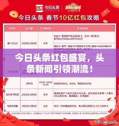 随着科技的飞速发展和智能手机的普及,新闻阅读方式也在不断地变革,头条新闻和今日头条作为现代人们获取信息的重要途径,已经成为我们生活中不可或缺的一部分,而今天,我们要探讨的不仅仅是新闻本身,更是与这些平台紧密相连的红包盛宴。