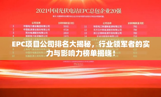 随着全球经济的不断发展和基础设施建设的持续繁荣,EPC(Engineering, Procurement, Construction)项目公司日益成为建筑行业的重要组成部分,这些公司在工程、采购、施工等多个环节拥有强大的实力和经验,为各类项目提供高效、专业的服务,本文将探讨当前EPC项目公司的排名,揭示行业领军者的实力与影响力。