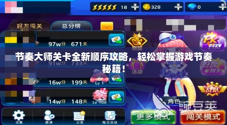 《节奏大师》是一款音乐节奏手游,玩家跟随音乐节奏敲击下落的音符,或通过敲击与滑动的方式连击连续的旋律音符以获得畅快的游戏体验,游戏过程中,玩家需要掌握音乐的节奏,以便在游戏中取得好成绩,随着游戏版本的更新,关卡内容也在不断丰富,本文将为你提供最新的关卡顺序攻略。