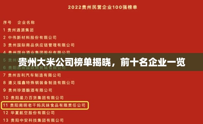 贵州,这片神奇的大地,以其独特的气候条件和丰富的自然资源孕育出了众多优质农产品,贵州大米以其独特的口感和品质,赢得了广大消费者的喜爱,我们将为您揭晓贵州大米公司排名前十名,让您更深入了解这些优秀的企业。