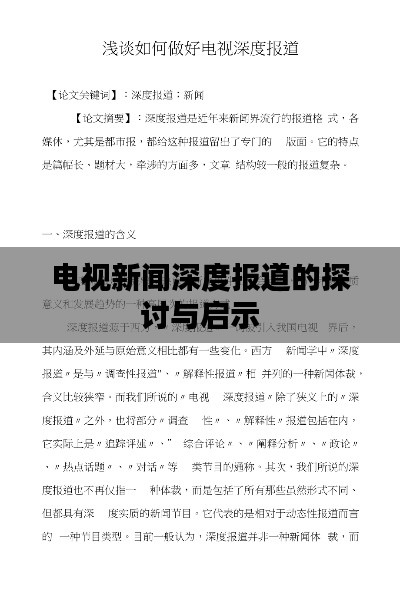 在当今信息爆炸的时代,新闻传播的速度和广度日益加剧,作为新闻传播的重要载体,电视新闻深度报道在传递信息、引导舆论、反映社会现实等方面发挥着举足轻重的作用,本文旨在探讨电视新闻深度报道的内涵、现状及其重要性,并提出改进建议,以期提高电视新闻深度报道的质量和影响力。
