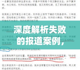 深度报道作为媒体的一种重要形式,旨在透过现象看本质,挖掘事实真相,为读者提供全面、深入的新闻信息,并非所有深度报道都能取得预期的成功效果,本文将探讨一个失败的深度报道案例,分析其中的原因和教训。
