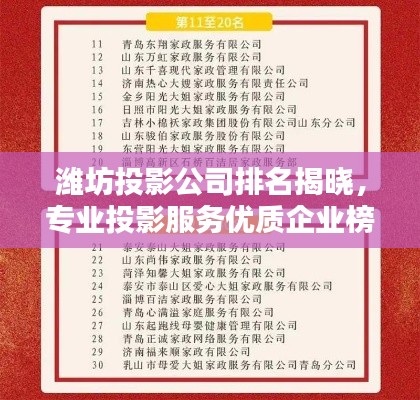 随着科技的不断发展,投影技术已成为许多行业不可或缺的一部分,在潍坊,投影市场也在逐渐壮大,众多投影公司纷纷涌现,本文将为您介绍潍坊投影公司的排名,以便您更好地了解这些公司的实力和服务。