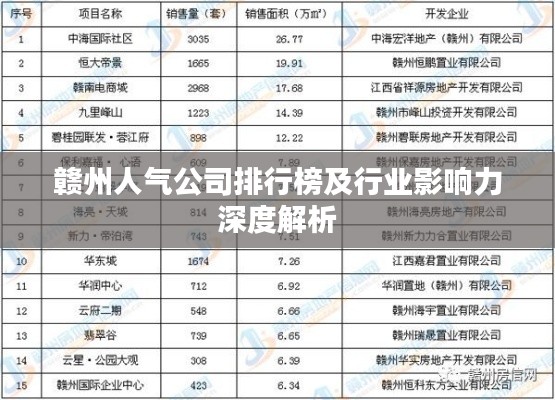 本文介绍了赣州人气公司的排名及其行业影响力,这些公司在各自的领域内表现出色,为赣州经济社会发展做出了重要贡献,随着市场的不断变化和科技的进步,这些公司还将继续发挥自身优势,不断创新和发展,为赣州乃至整个江西省的经济社会发展做出更大的贡献,我们也期待更多的企业能够在赣州落户,共同推动赣州的经济社会发展。
