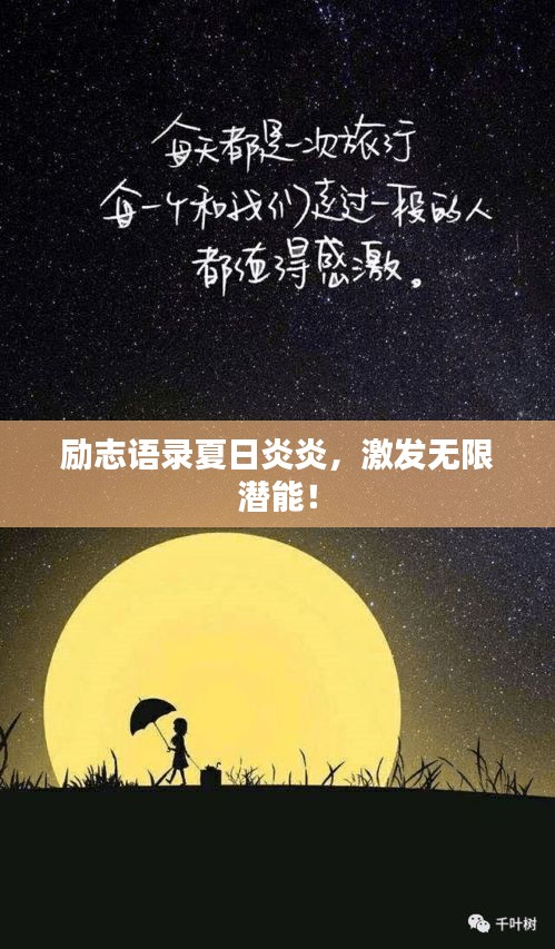 夏天的阳光,明媚而炽热,如同我们内心的激情,燃烧着向前的力量,在这个充满活力的季节里,让我们一起用励志的语录,鼓舞自己,迎接每一个挑战。