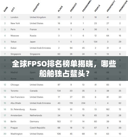 随着全球海洋石油开采的不断发展,浮式生产储油设施(FPSO)在海上石油产业中的地位日益凸显,FPSO是集生产、储存、卸载等功能于一体的海上石油生产设施,因其高效、灵活的特点而受到广泛应用,本文将探讨全球范围内的FPSO排名,分析其在世界海洋石油产业中的影响力。