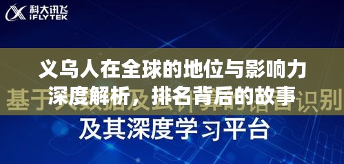 义乌人在全球经济、教育、文化等方面都表现出色,为全球舞台增添了独特的色彩,要具体排名,还需要考虑众多复杂的因素,我们应该看到,每一个地区的人群都有其独特的优势和特点,在全球舞台上共同创造多元的文化和交流,对于义乌人来说,他们凭借自身的努力和才华,已经在全球范围内赢得了广泛的尊重和认可,随着全球化进程的深入和科技的飞速发展,义乌人将在全球舞台上继续展现其独特的魅力和竞争力,我们也期待更多的地区和人群能够在全球舞台上发挥自身的优势,共同推动世界的繁荣与进步。