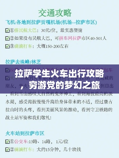 拉萨,这座神秘而美丽的城市,是许多学生和旅行者的梦想目的地,对于学生而言,选择火车作为出行方式既经济又方便,本文将为学生提供一份详尽的拉萨旅游攻略,帮助大家在火车抵达后,顺利开始美好的旅程。