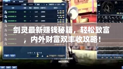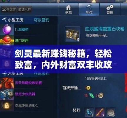 剑灵作为一款热门的网络游戏,吸引了大量玩家的加入,随着游戏的发展,赚钱的方式也在不断变化,本文将为大家分享最新的剑灵赚钱攻略,帮助大家在游戏中轻松致富,实现游戏内外财富双丰收。