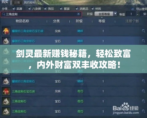 转载请注明来自大成醉串串企业,本文标题:《剑灵最新赚钱秘籍,轻松致富,内外财富双丰收攻略!》