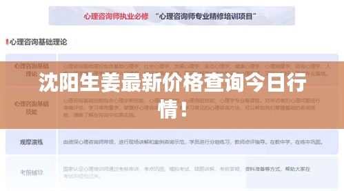 随着生活水平的提高,人们对食品价格的了解越来越深入,特别是在食品市场日益繁荣的今天,了解食品价格对于消费者来说尤为重要,本文将为您详细介绍沈阳今日生姜价格查询最新情况。