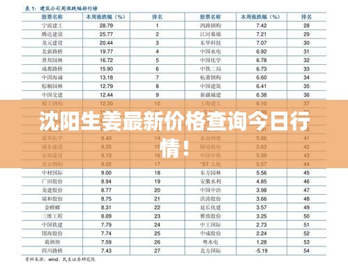 了解沈阳今日生姜价格查询最新情况对于消费者和商家都至关重要,希望本文能为您提供有价值的信息,帮助您更好地了解沈阳生姜市场。