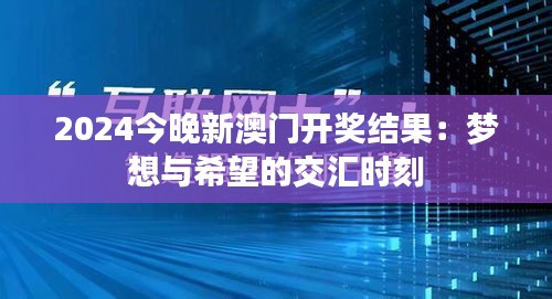 2024今晚新澳门开奖结果:梦想与希望的交汇时刻