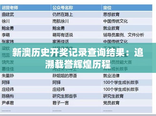 新澳历史开奖记录查询结果:追溯载誉辉煌历程