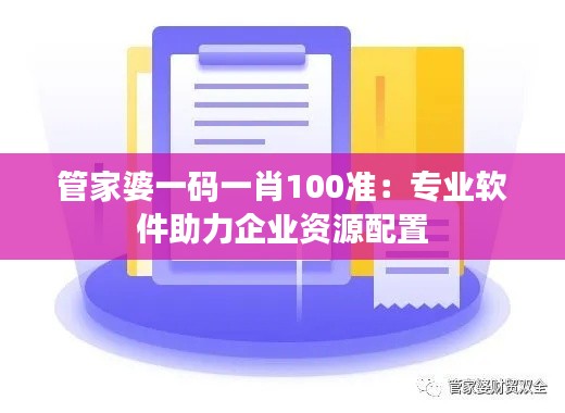 管家婆一码一肖100准:专业软件助力企业资源配置