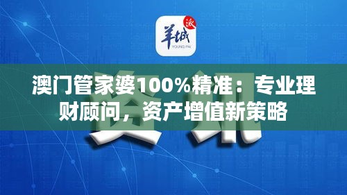 在当今社会,理财已经成为人们生活中不可或缺的一部分。如何合理规划资产,实现资产的保值增值,是许多人关注的问题。本文将以"澳门管家婆100%精准:专业理财顾问,资产增值新策略"为主题,详细介绍一本关于理财顾问服务及资产增值策略的专业文献资料。希望对广大读者在理财方面有所启示和帮助。
