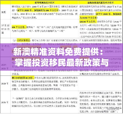 本文旨在为有意向进行新澳投资移民的人士提供一个全新的精准资料免费提供平台,帮助读者全面掌握投资移民的最新政策与实操指南。通过深入浅出的分析和详细的步骤讲解,让读者在投资移民的道路上少走弯路,顺利完成身份的转变。