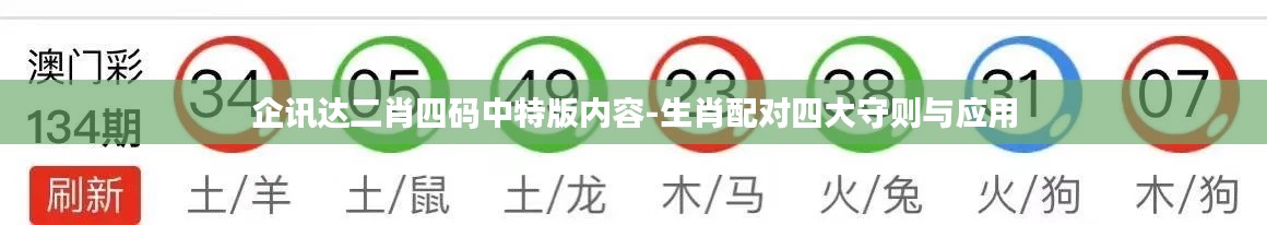 生肖是中国传统文化中的重要组成部分,每个生肖都有其独特的属性和象征意义。“企讯达二肖四码中特版内容”中的生肖配对四大守则,是基于这些属性和象征意义而制定的。守则一强调的是生肖的相生相克原则,二是生肖性格和谐的配对,三是生肖在五行中的相互作用,四是生肖在不同情境下的应用策略。