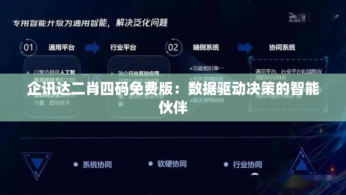 在当今数字化时代,数据已成为企业决策过程中不可或缺的关键因素。企讯达二肖四码免费版作为一种数据驱动决策的智能伙伴,它的存在与应用依赖于对文献的深入研究和理解。本文将详细介绍企讯达二肖四码免费版的文献资料内容,包括其技术原理、功能特性、应用场景以及所面临的问题与挑战,帮助读者全面了解这一智能工具。