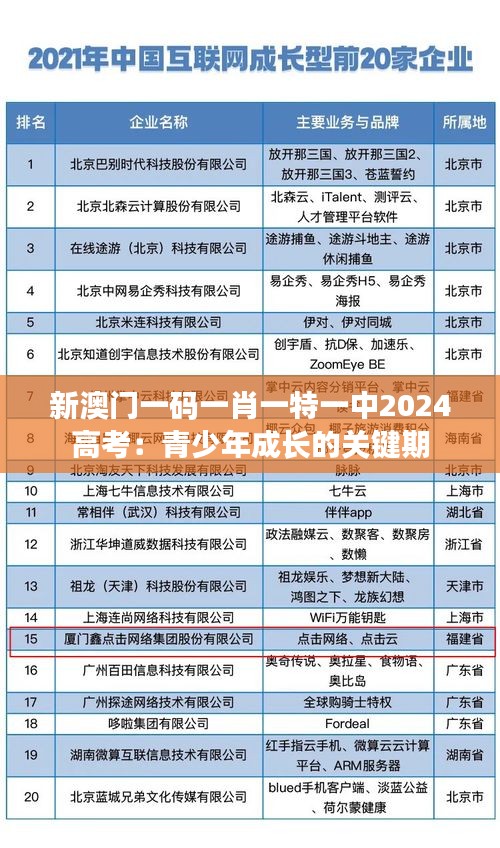 新澳门一码一肖一特一中2024高考:青少年成长的关键期