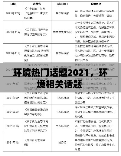 2021年,环境热门话题涵盖了气候变化、塑料污染、生物多样性、可再生能源、绿色金融、环境保护政策等多个方面。这些问题不仅关系到地球的未来,也影响着人类的生存和发展。在全球范围内,各国政府、企业和公众都在积极应对这些挑战,共同推动环境保护事业的发展。