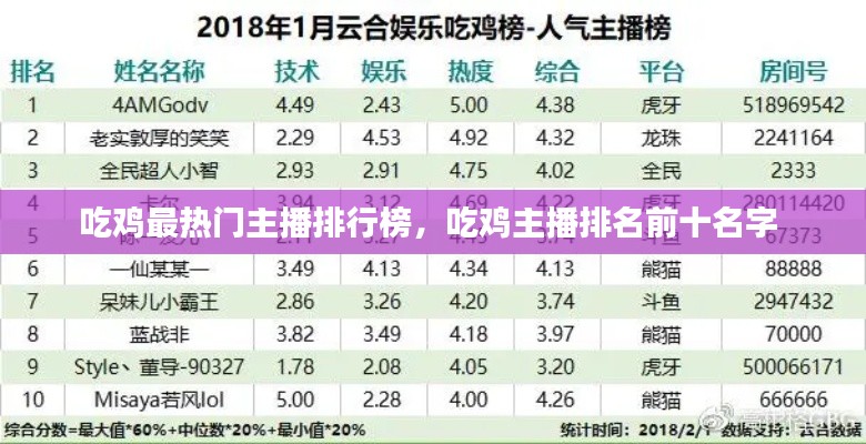 吃鸡最热门主播排行榜,吃鸡主播排名前十名字