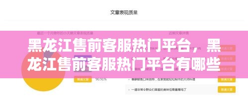 黑龙江售前客服热门平台,黑龙江售前客服热门平台有哪些