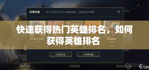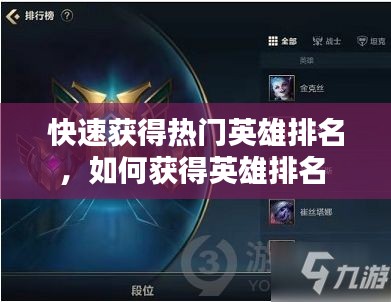 在当今的电子竞技世界中,热门英雄排名的争夺异常激烈。无论是为了在游戏中获得更好的成绩,还是为了在社交圈中展示自己的实力,快速获得热门英雄排名成为了许多玩家的追求。本文将为您揭示一些有效的方法,帮助您在短时间内提升自己在热门英雄排名中的地位。