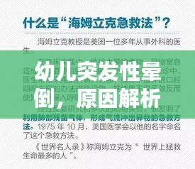 幼儿突发性晕倒现象,对于家长和幼教工作者来说,无疑是一种令人担忧的状况,这种现象可能由多种原因引起,需要我们密切关注并采取相应措施,本文将详细解析幼儿突发性晕倒的原因、应对措施以及预防方法,以期提高家长和幼教工作者的应对能力,保障幼儿健康成长。