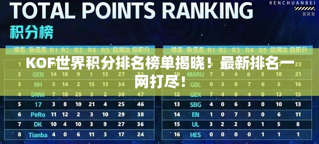 随着KOF(拳皇)在全球范围内的普及和影响力的提升,各大赛事中的激烈竞争使得选手们的积分排名成为了粉丝关注的焦点,本文将为您详细介绍KOF世界积分排名,带您了解这一领域的最新动态和顶尖选手的荣耀时刻。