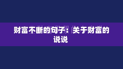 财富不断的句子:关于财富的说说